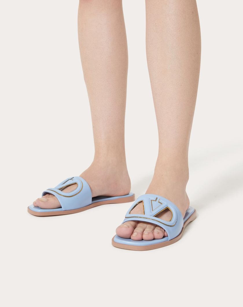 Valentino Garavani VLogo cut-out slide sandal in calfskin leather