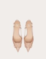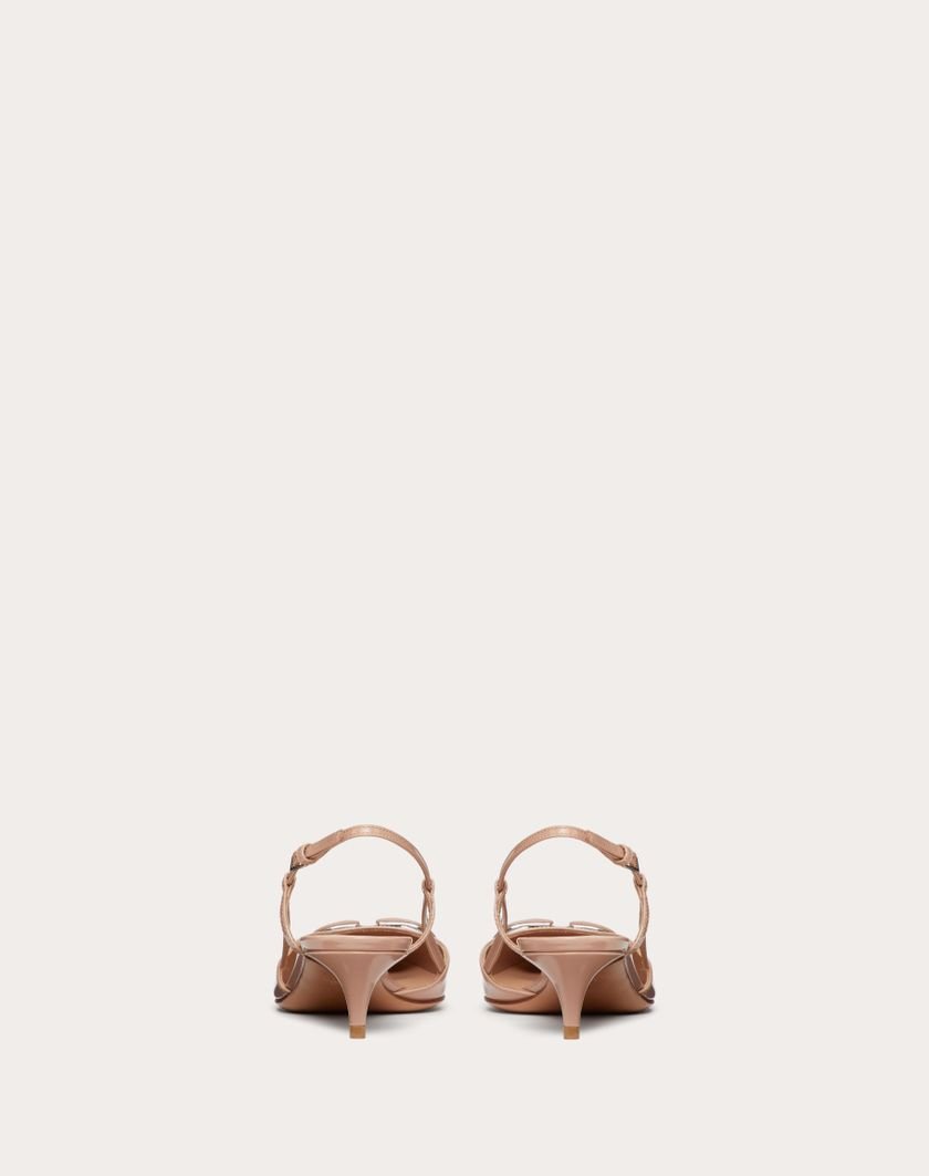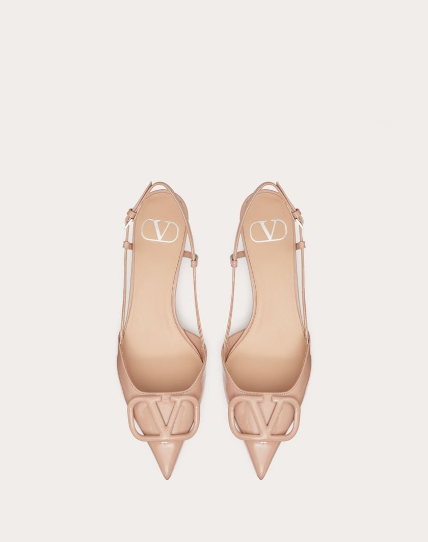 Valentino Garavani patent leather slingback pump with VLogo Signature embellishment.