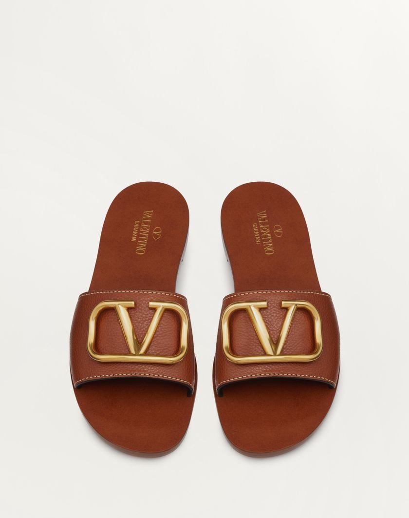VLOGO SIGNATURE SLIDE SANDAL IN GRAINY COWHIDE WITH ACCESSORY
