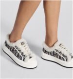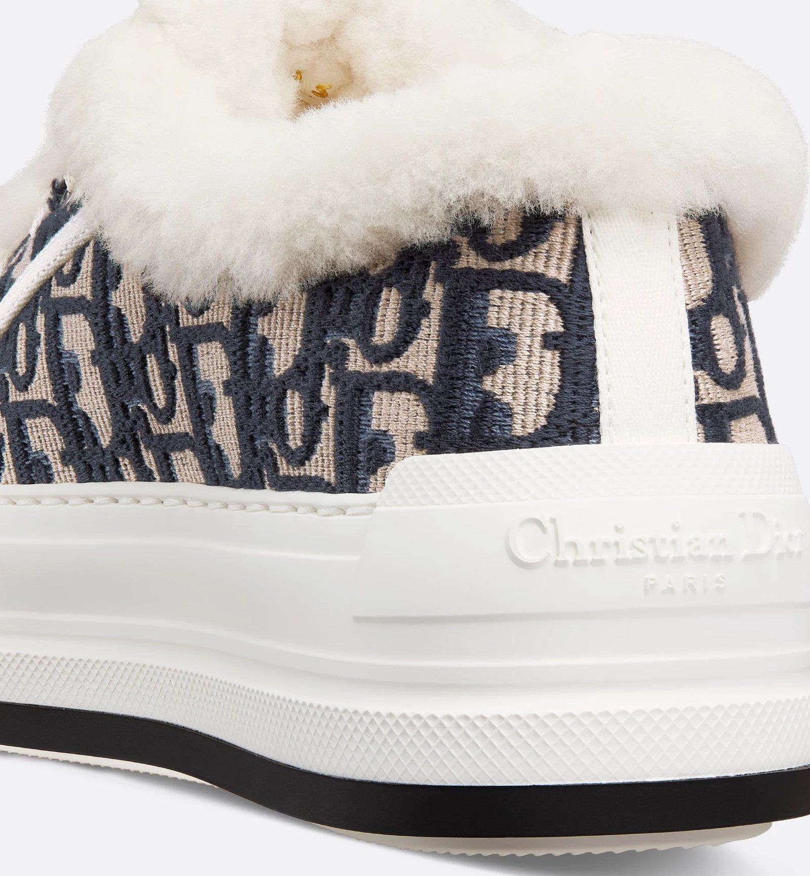 The Walk’n’Dior platform sneaker enhances the line with a modern creation. The deep blue Dior Oblique embroidered cotton upper is enhanced by white shearling lining. The style features a comfortable and ultralightweight thick sole, tongue and Christian Dior Paris laces. The sneaker will add a contemporary touch to any laid-back look.