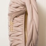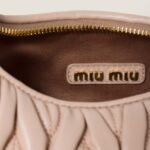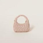 The Wander bag is reinterpreted season after season, becoming an iconic accessory of Miu Miu collections. Made of matelassé nappa leather, the bag is characterized by the sophisticated, three-dimensional effect created by the refined workmanship. The hobo shape, blending retro inspirations and contemporary elegance, becomes a new synonym of modern femininity.