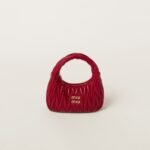 The Wander bag is reinterpreted season after season, becoming an iconic accessory of Miu Miu collections. Made of matelassé nappa leather, the bag is characterized by the sophisticated, three-dimensional effect created by the refined workmanship. The hobo shape, blending retro inspirations and contemporary elegance, becomes a new synonym of modern femininity.