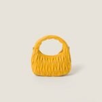 The Wander bag is reinterpreted season after season, becoming an iconic accessory of Miu Miu collections. Made of matelassé nappa leather, the bag is characterized by the sophisticated, three-dimensional effect created by the refined workmanship. The hobo shape, blending retro inspirations and contemporary elegance, becomes a new synonym of modern femininity.