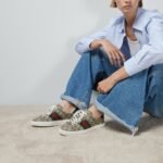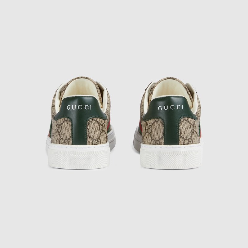 Since its debut, the Ace sneaker has become a mainstay of the House’s narrative. A new version of the characteristic low-top silhouette is presented in the latest collection, featuring unique details. A chunkier construction defines the shape, while a metal ??ACE?? tag shines on the lace-up closure. Gucci’s distinctive green and red Web stripe completes the style.