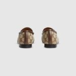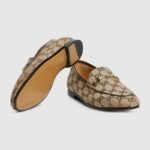 Since its debut, the slipper has become a mainstay of Gucci collections. Here it defines this pair of women’s loafer crafted in Original GG canvas in a classic beige and ebony color.