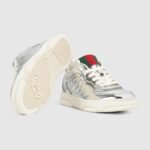 The Re-Web sees Gucci??s heritage stripes as a bold statement detail on a contemporary silhouette. This pair is crafted from silver metallic leather and presents a metallic GG leather insert. Defined by multiple signature details, this new sneaker takes center stage with the bold green and red Web tongue.