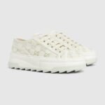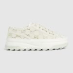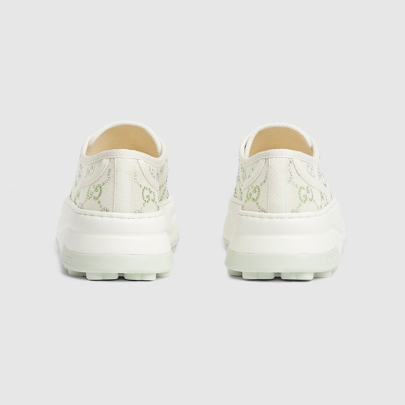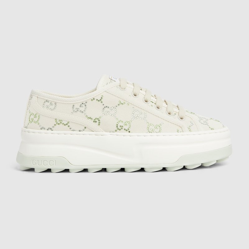 First used in the 1970s, the GG logo was an evolution of the original Gucci rhombi design from the 1930s, and from then it’s been an established symbol of the House’s heritage. Here, the pattern defines this pair of Gucci Tennis 1977 sneakers presented in ivory GG Crystal canvas. A chunky rubber sole adds a modern touch to this iconic style.