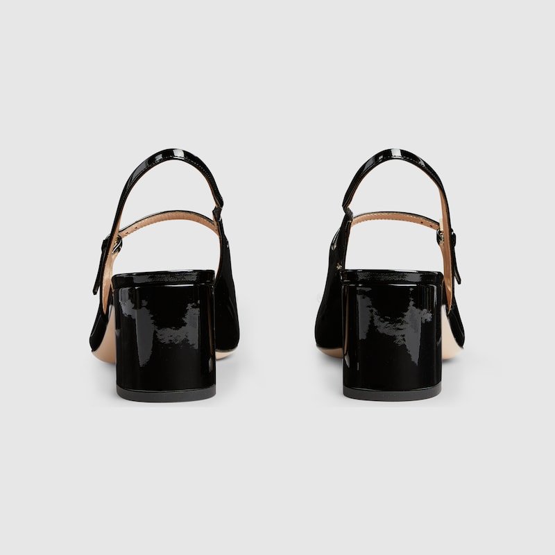 The iconic Horsebit defines this pair of patent leather pumps. The rounded toe and the adjustable ankle closure complete the style, enhancing its preppy spirit.