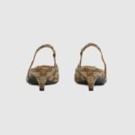 Inspired by the summer spirit and beach clubs on the Italian coast, this item is part of Gucci Lido. The Original GG canvas lends itself to these striking slingback pumps. The beige and brown motif is accentuated by brown leather trim and light gold-toned hardware. They are completed with a point toe, elastic strap and low heel that offer a comfortable fit.