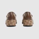 The Original GG canvas lends itself to these elevated loafer with Horsebits. The beige and ebony motif is accentuated by a light gold-toned hardware. The wedge detail adds a bold and special touch to this iconic style.