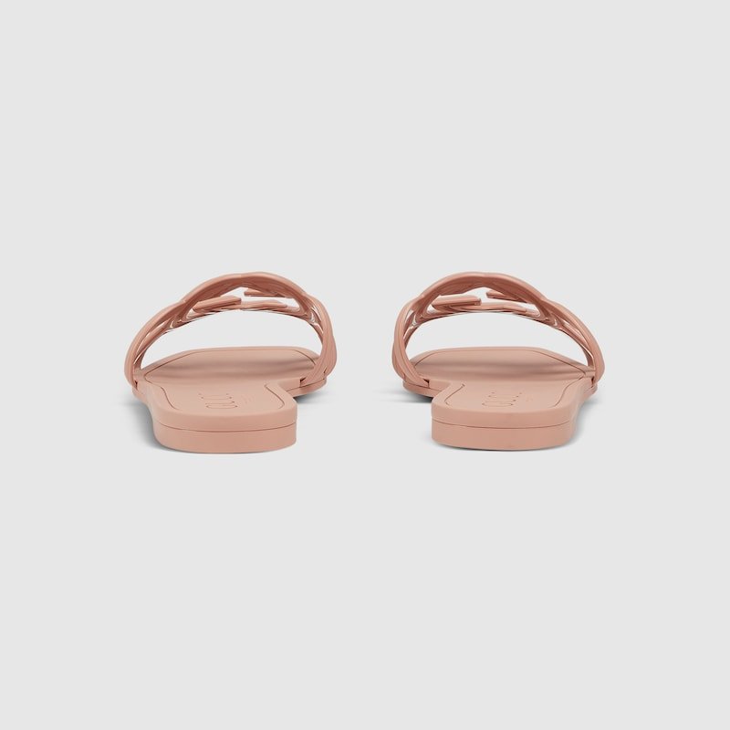 Emblematic codes of the House and refined patterns are reinterpreted in contemporary ways for the latest Gucci collection. This slide sandal appears in rubber with an Interlocking G cut-out enriching the style with a distinct logo feel.