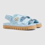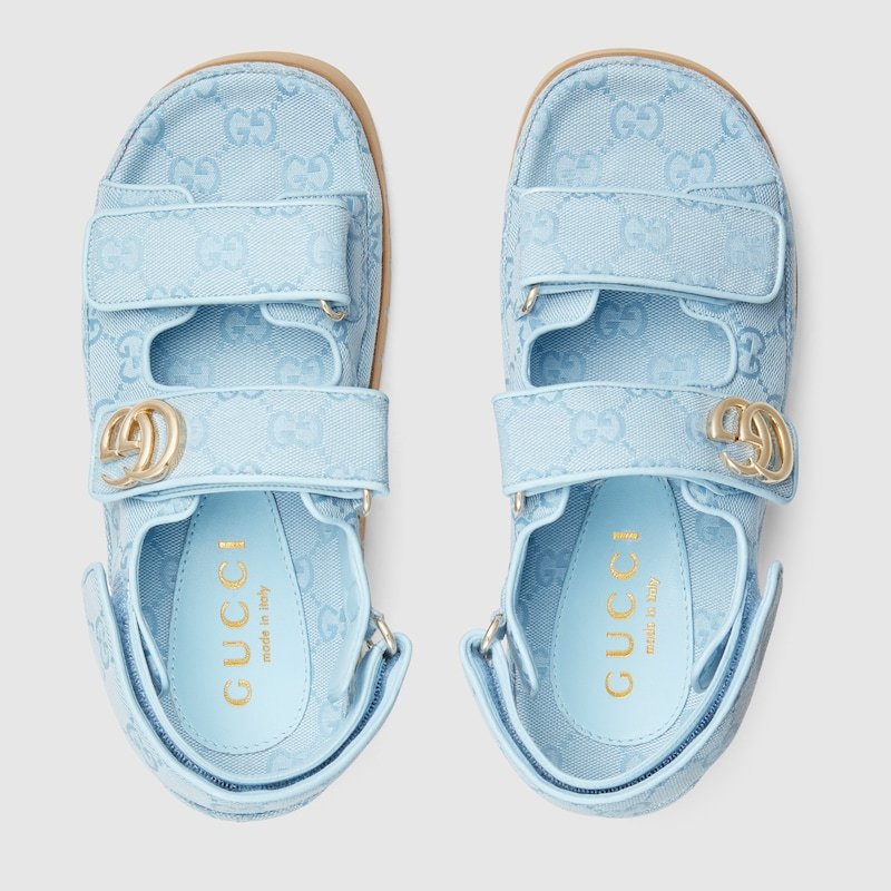 Gucci’s contemporary narrative explores a unique blend of traditional elements and the much-loved symbols of the House. This pair of sandals is defined by the beloved Double G hardware, adding a subtle logo feel, mixed with the versatility of the Velcro straps.