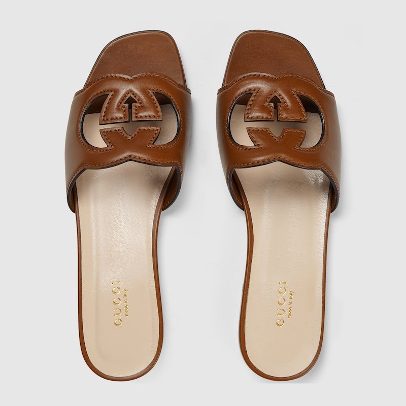 Inspired by the summer spirit and beach clubs on the Italian coast, this item is part of Gucci Lido. Influenced by an archival design from the ’70s-a hallmark era of the House, the Interlocking G appears as a maxi cut-out detail on this leather sandal. An ode to timeless elegance, the Gucci Love Parade collection explores archival symbols in new ways.