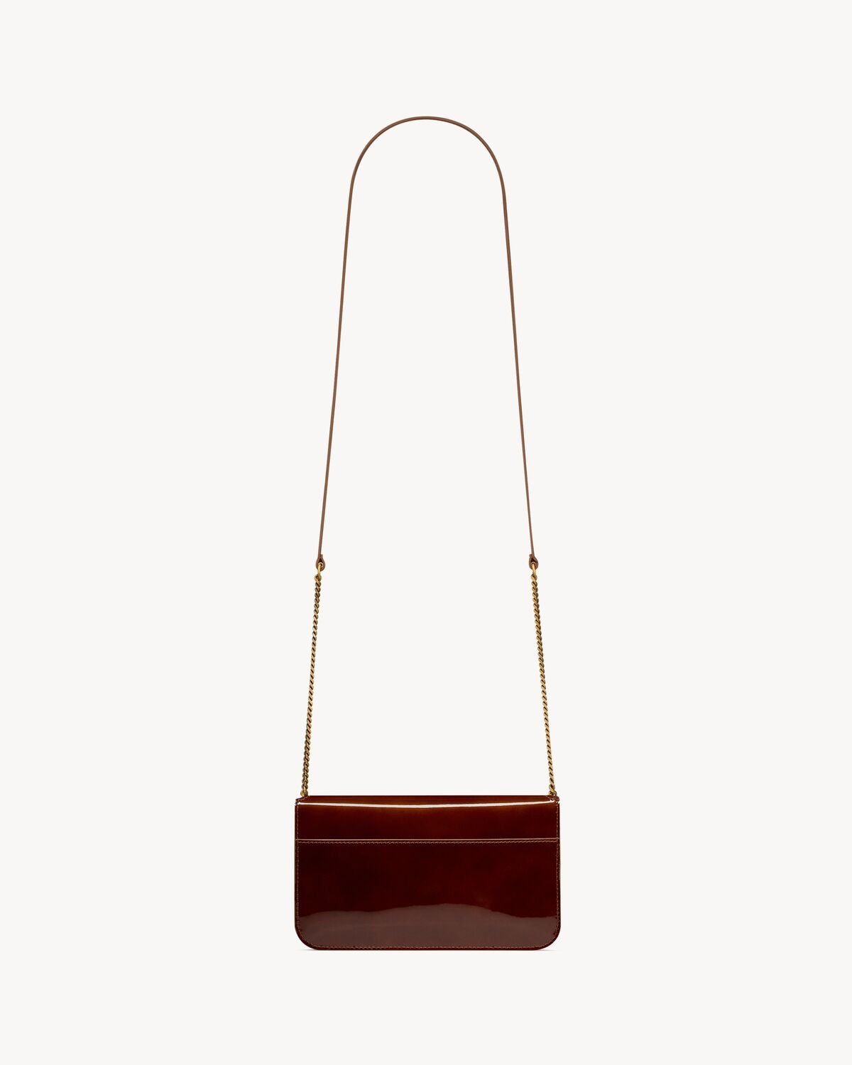 A leather-reinforced chain strap provides comfortable shoulder carry.