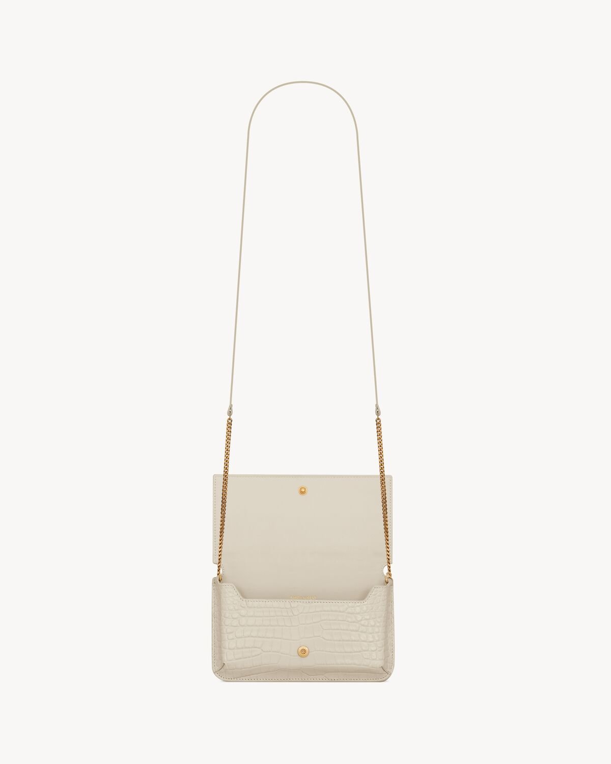 YSL Cassandre Phone Holder in Shiny Crocodile-Embossed Leather