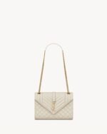 YSL Envelope Medium in Quilted Grain De Poudre Embossed Leather