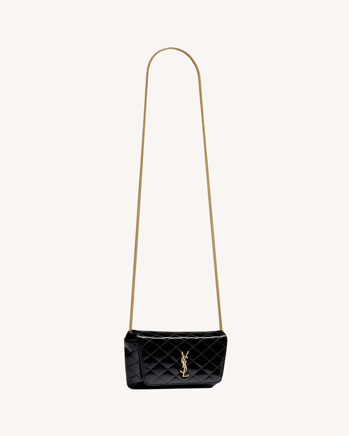 YSL Gaby Chain Phone Holder in Patent Leather
