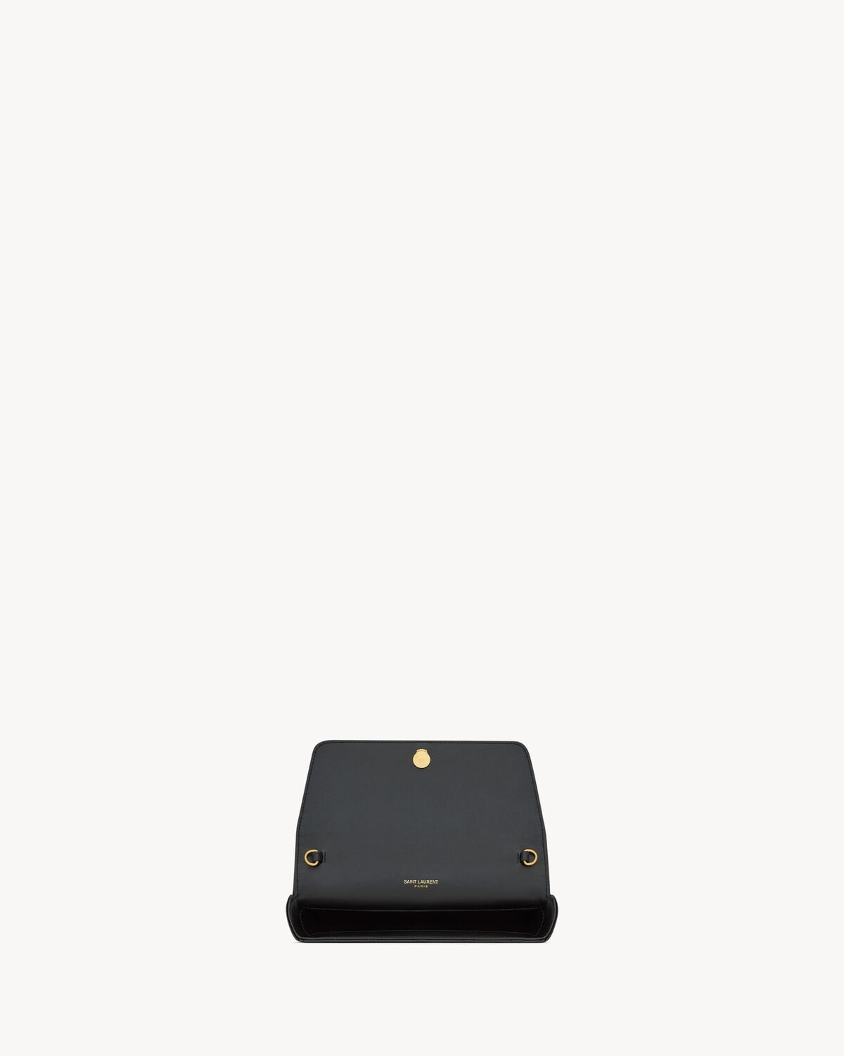 phone holder with front flap, decorated with the CASSANDRE and diamond-quilted overstitching, featuring a chain shoulder strap.