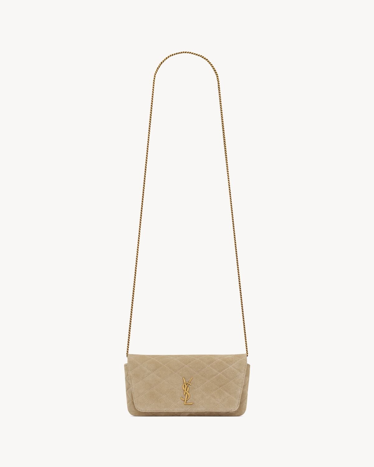 YSL Gaby Chain Phone Holder in Quilted Suede