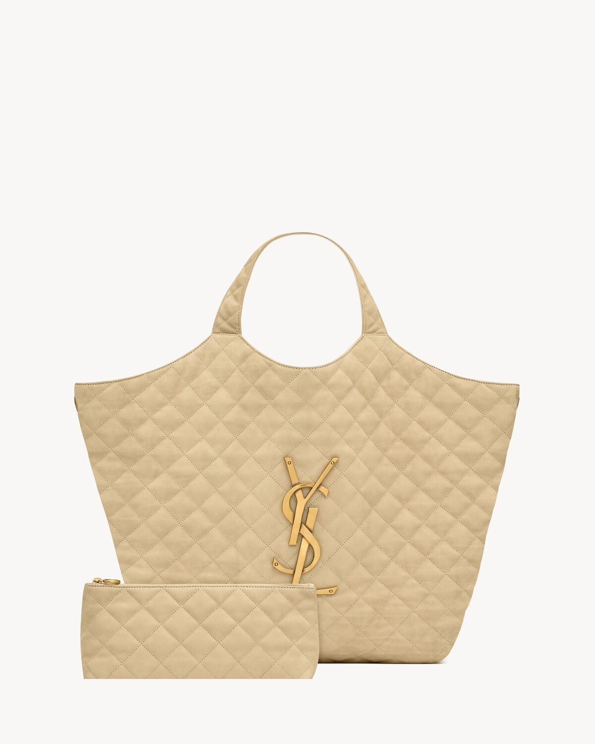 YSL Icare Maxi Shopping Bag In Quilted Nubuck Suede