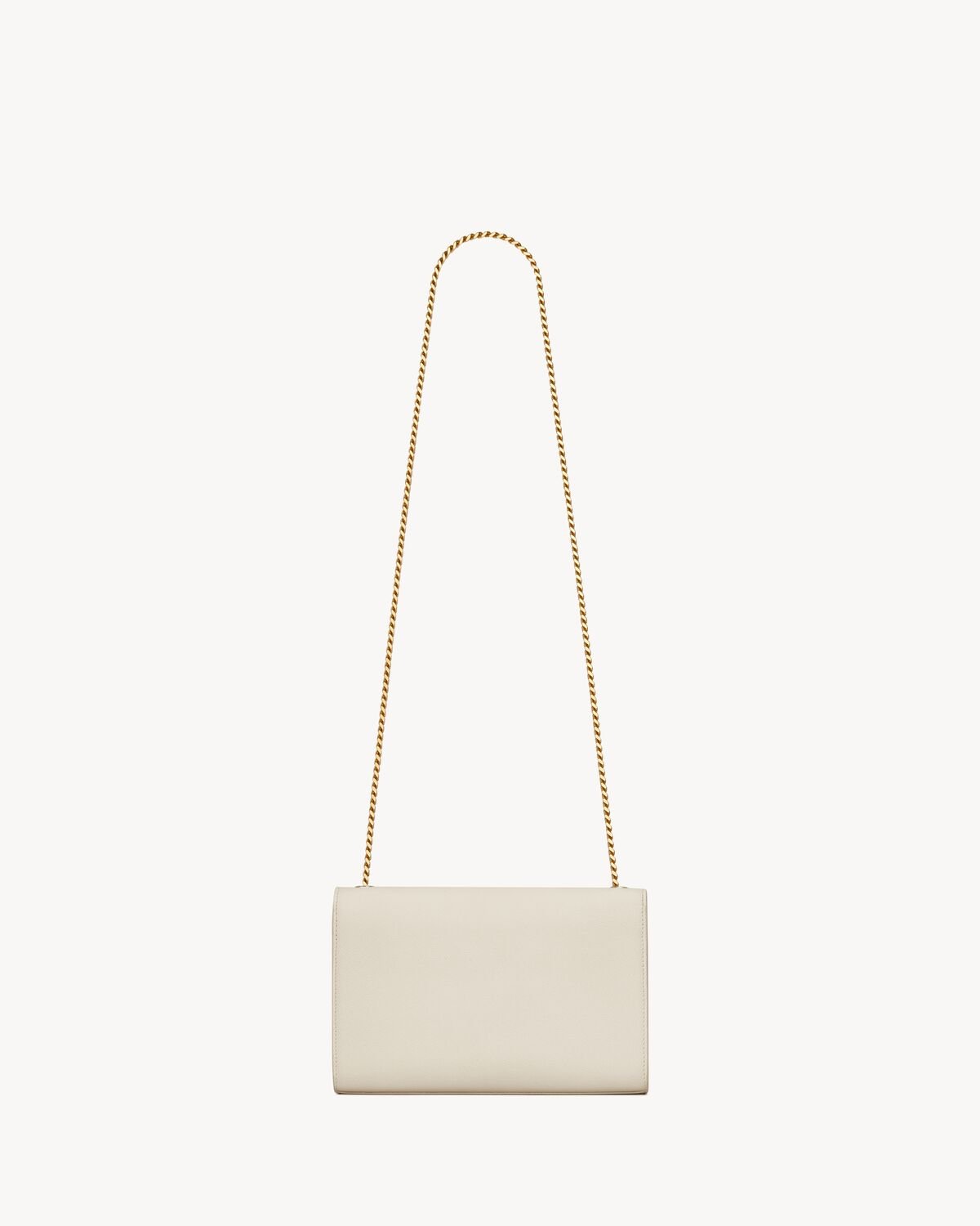 ICONIQUE KATE BAG IN GRAIN DE POUDRE EMBOSSED LEATHER, FEATURING THE CASSANDRE AND CURB CHAIN. WORN ON THE SHOULDER OR CROSSBODY.