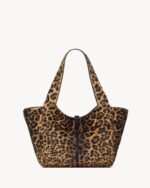 supple tote in leopard-print pony hair and nappa leather. Lightweight and fully lined in suede, it features an inner zip pocket and leather tab closure decorated with the CASSANDRE.