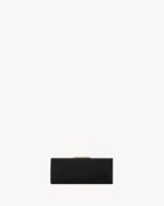Slim clutch bag with metal snap closure, featuring an embossed Saint Laurent Paris signature.