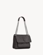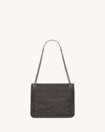 FEATURES A SLIDING CHAIN STRAP THAT CAN BE WORN ON THE SHOULDER OR CROSSBODY.