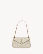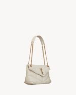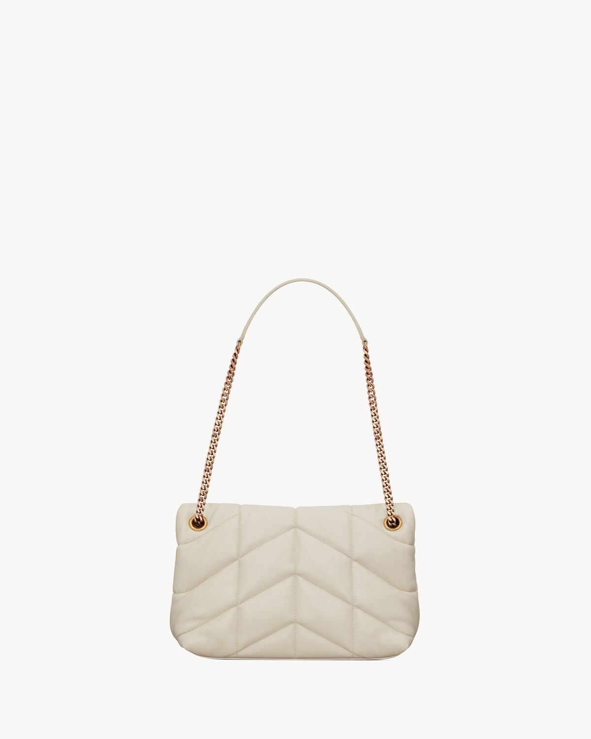 THE ICONIC LOULOU IN PUFFER VERSION, WITH CHEVRON QUILT OVERSTITCHING.