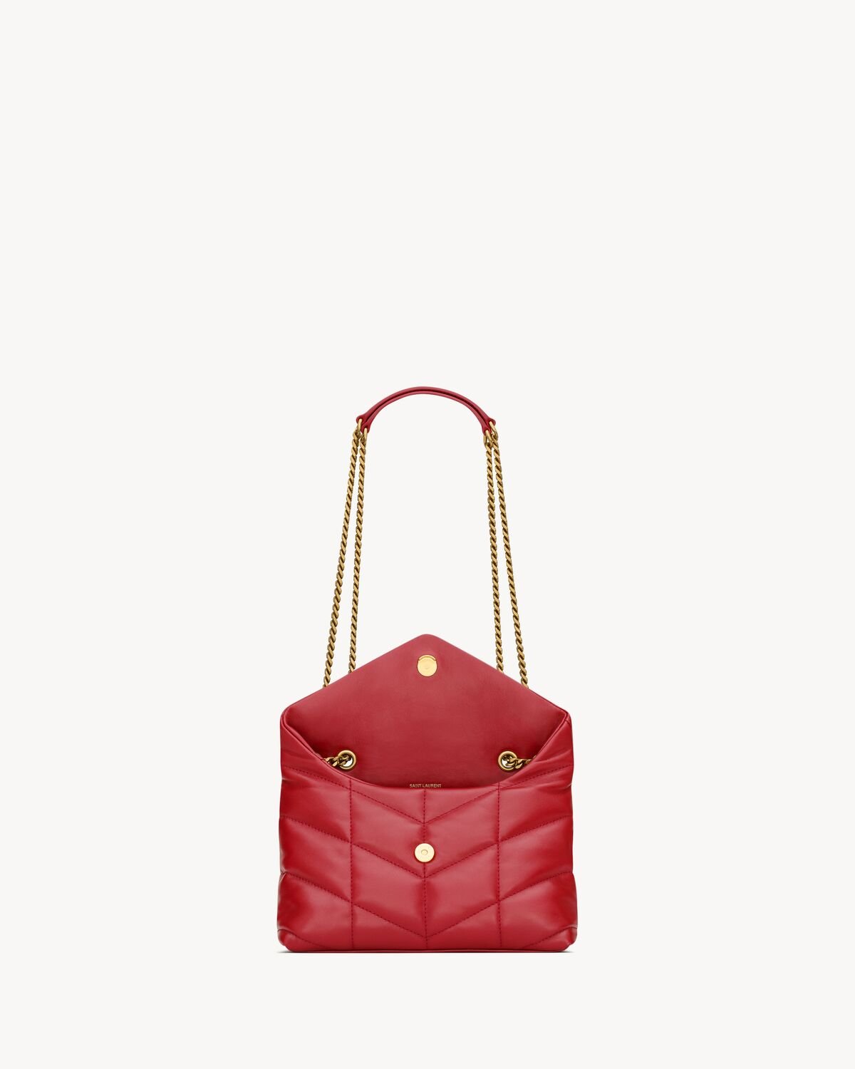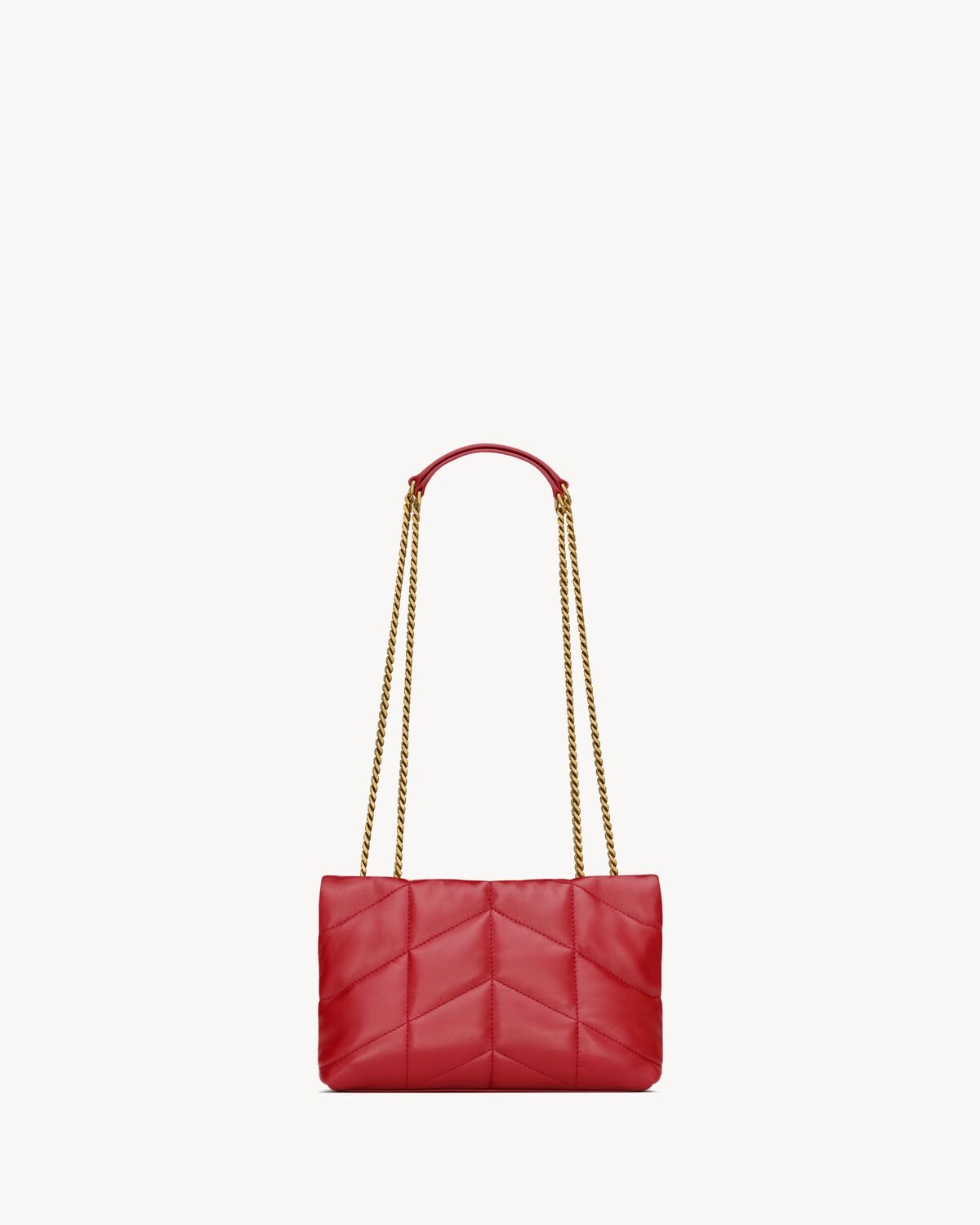 The mini version of the iconic LOULOU puffer, in soft nappa lambskin with chevron quilting.